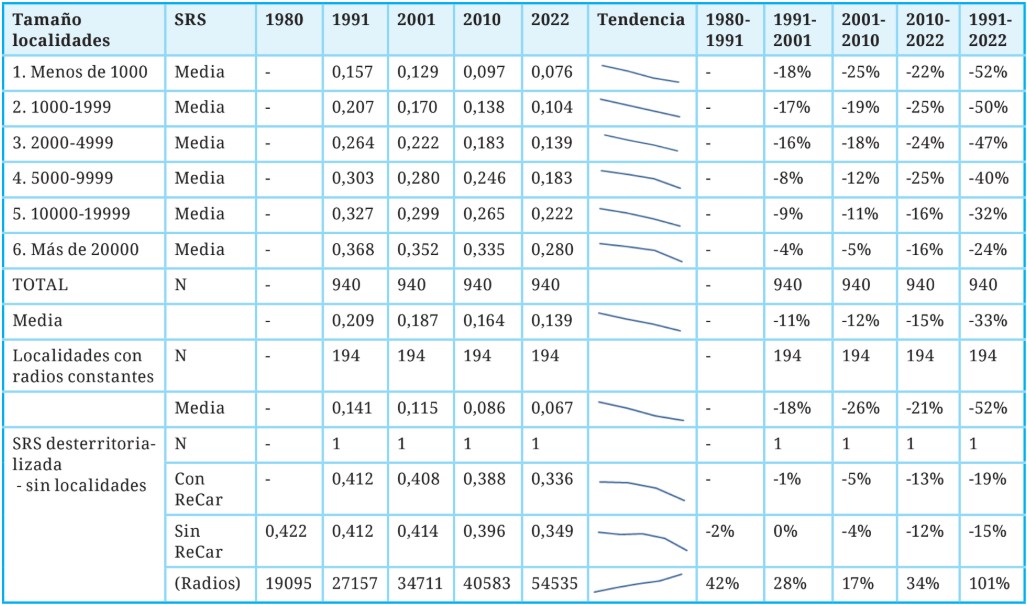 Tabla 2. Niveles de SRS y variación intercensal según tamaño de las localidades, 1991-2022